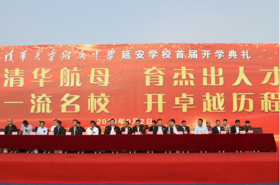 延安市副市長劉曉軍,延安新區(qū)管委會黨工委副書記、主任薛鵬春,延安大學黨委書記薛義忠,延安大學校長張金鎖,清華大學附屬中學校長王殿軍,陜建十三建公司董事長卜國平以及教育局、社會事務管理局、新區(qū)一中、新區(qū)江蘇中學、陜建八建集團等相關領導出席活動。