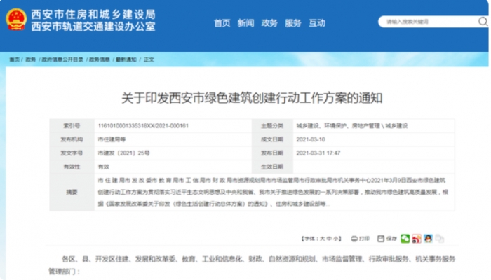 日前,西安市住建局發布關于印發西安市綠色建筑創建行動工作方案的通知。
