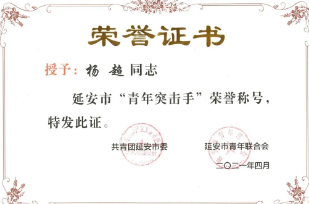 陜建十三建集團團委被授予“延安市五四紅旗團委”稱號,集團南泥灣現(xiàn)代農(nóng)業(yè)示范園項目青年突擊隊被授予“延安市青年突擊隊”稱號,楊永宏被授予“延安市十佳青年突擊手”稱號,薛淑元被授予“延安市優(yōu)秀共青團干部”稱號,楊超被授予“延安市青年突擊手”稱號,李大衛(wèi)被授予“延安市青年崗位能手”稱號。