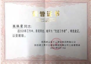 張保榮自畢業后已經扎根項目建設一線九個年頭。九年來,他兢兢業業、在自己的崗位上默默堅守,逐步成長為BIM技術專業人才。作為項目技術負責人,他積極發揮模范帶頭作用,今年,在參與金鴻·行知坊項目建設中,他充分利用BIM技術可視化、協調性、模擬性、優化性等特點,輔助項目管理,有效縮短了工期,節約了建造成本。2020年,他積極報名參加陜西省第五屆“秦漢杯”BIM應用大賽,他和隊員們關于延安大學新校區圖書館土建工程BIM技術應用的項目榮獲優秀獎。
