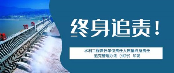 為加強水利工程質(zhì)量管理,強化質(zhì)量終身責任,提高質(zhì)量責任意識,保證水利工程建設(shè)質(zhì)量,水利部組織編制了《水利工程責任單位責任人質(zhì)量終身責任追究管理辦法(試行)》(以下簡稱《辦法》),強調(diào)水利工程質(zhì)量終身責任管理實行書面承諾和竣工后永久性標識等制度。