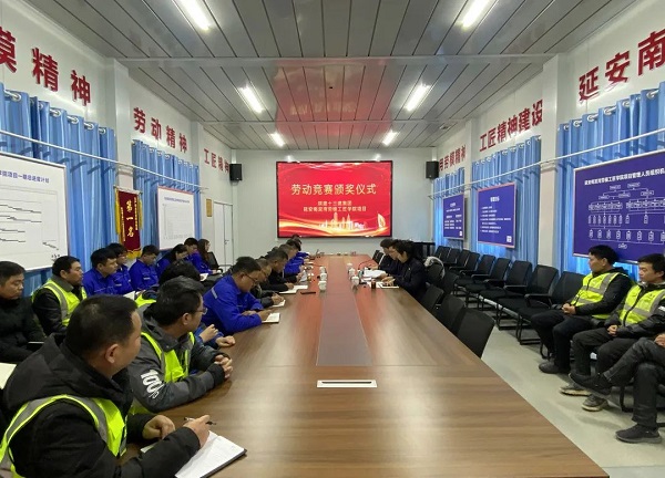 會上,集團生產管理部副部長路潔介紹了勞動競賽開展情況并宣讀了勞動競賽總結表彰名單。隨后,與會領導向勞動競賽優勝班組和先進個人發放了獎金,向項目建設者代表們發放了暖冬慰問品。