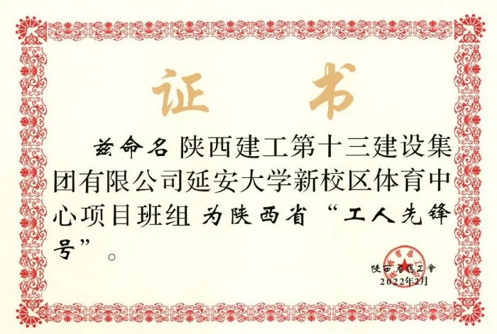 近日,陜西省總工會下發《關于為“十四運會和殘特奧會”作出突出貢獻的集體和個人授予陜西省五一勞動獎和陜西省工人先鋒號的決定》,陜建十三建集團延安大學新校區體育中心項目班組榮獲陜西省“工人先鋒號”稱號。
