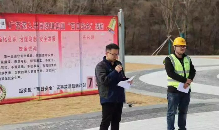 儀式上,陜建集團南泥灣紅色文化小鎮建設項目常務副經理屈曉東安排部署2019年重點安全注意事項,并貫穿落實集團公司“百日安全”活動的宗旨。會上各參建單位公司經理、項目經理積極講述“百日安全”活動的重要性。開發公司工程管理部長白彥明并發表講話。